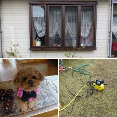 ななちゃんは、父ちゃんと、年末大掃除を兼ねて、買ったばかりの家庭用高圧洗浄機で外回りのお掃除をしました。(^▽^喜)